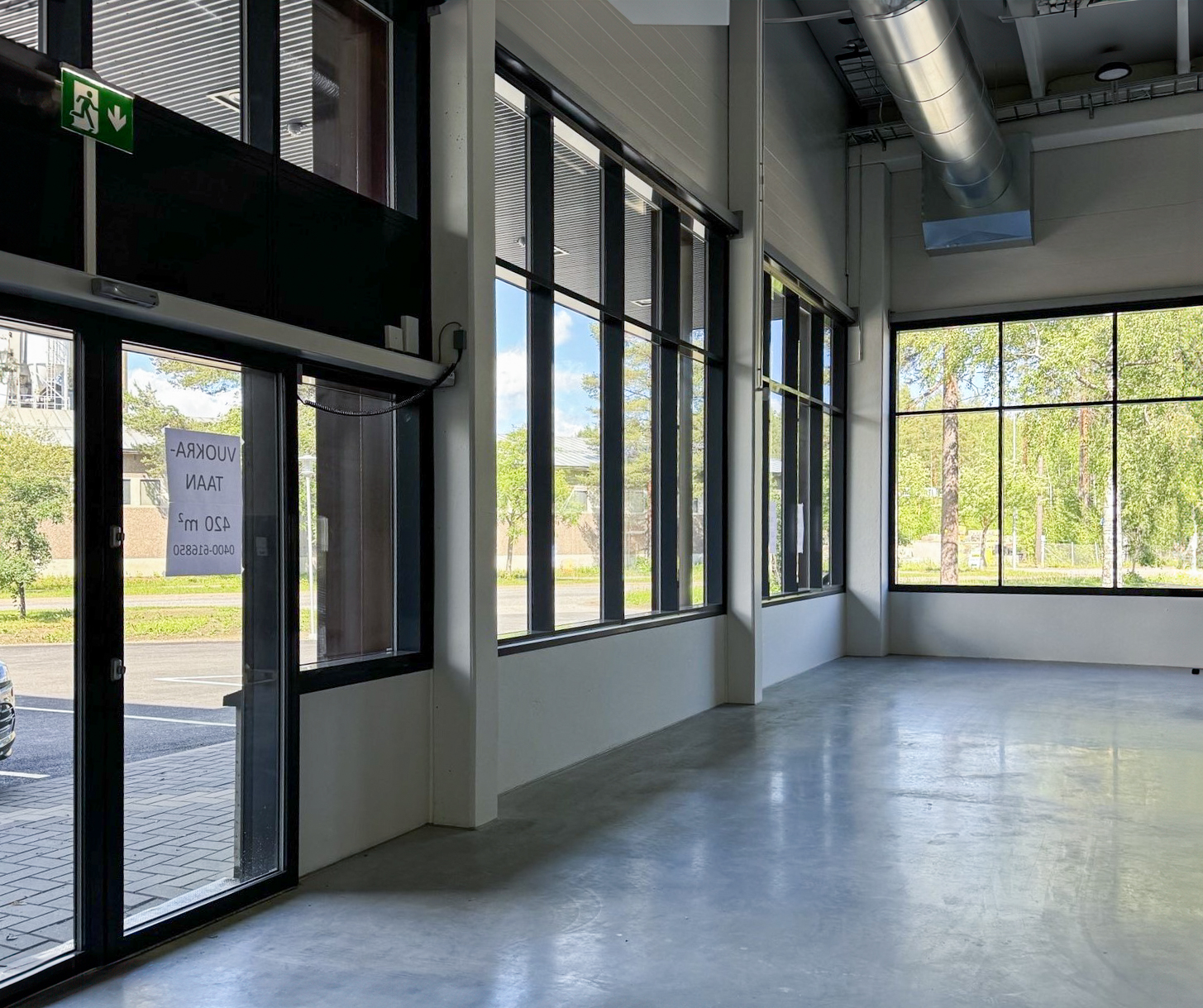 Vuokrattavana korkeaa halli- ja liiketilaa katutasossa n. 420 m².